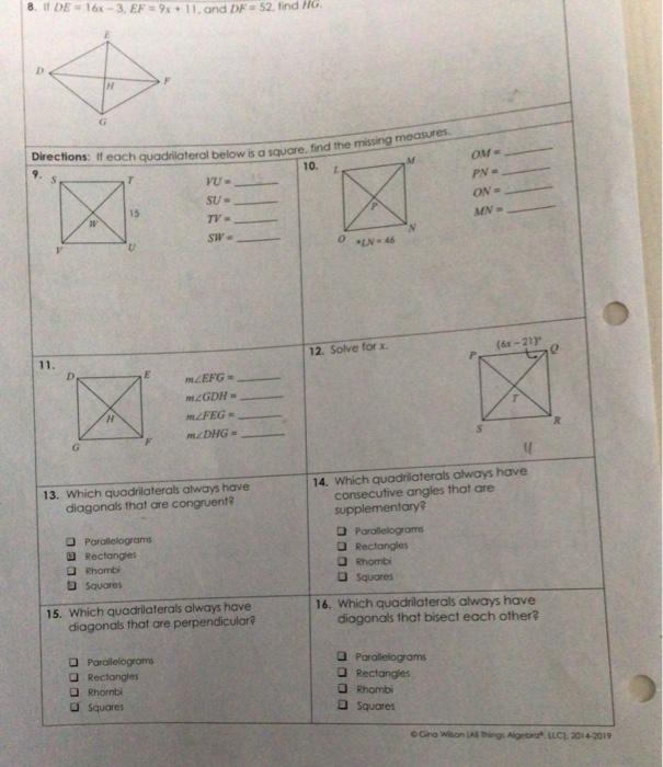 Check spelling or type a new query. If each quadrilateral below is a square find the missing measures. We did not find results for: Maybe you would like to learn more about one of these?